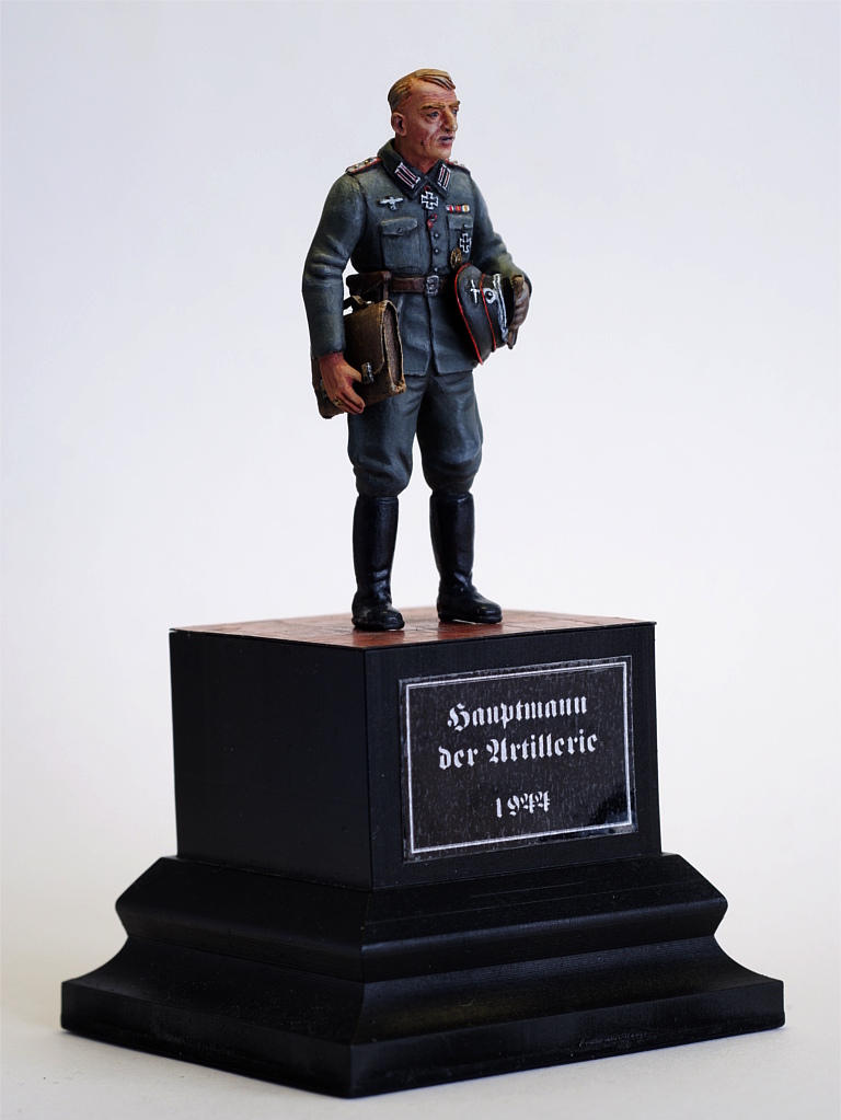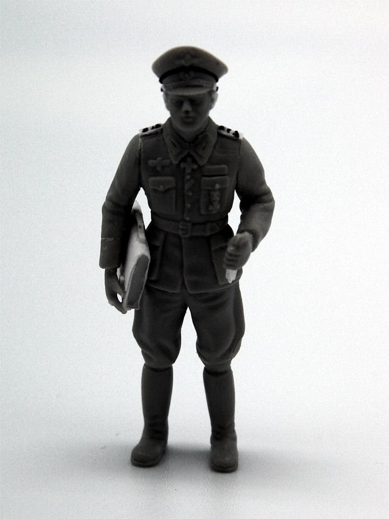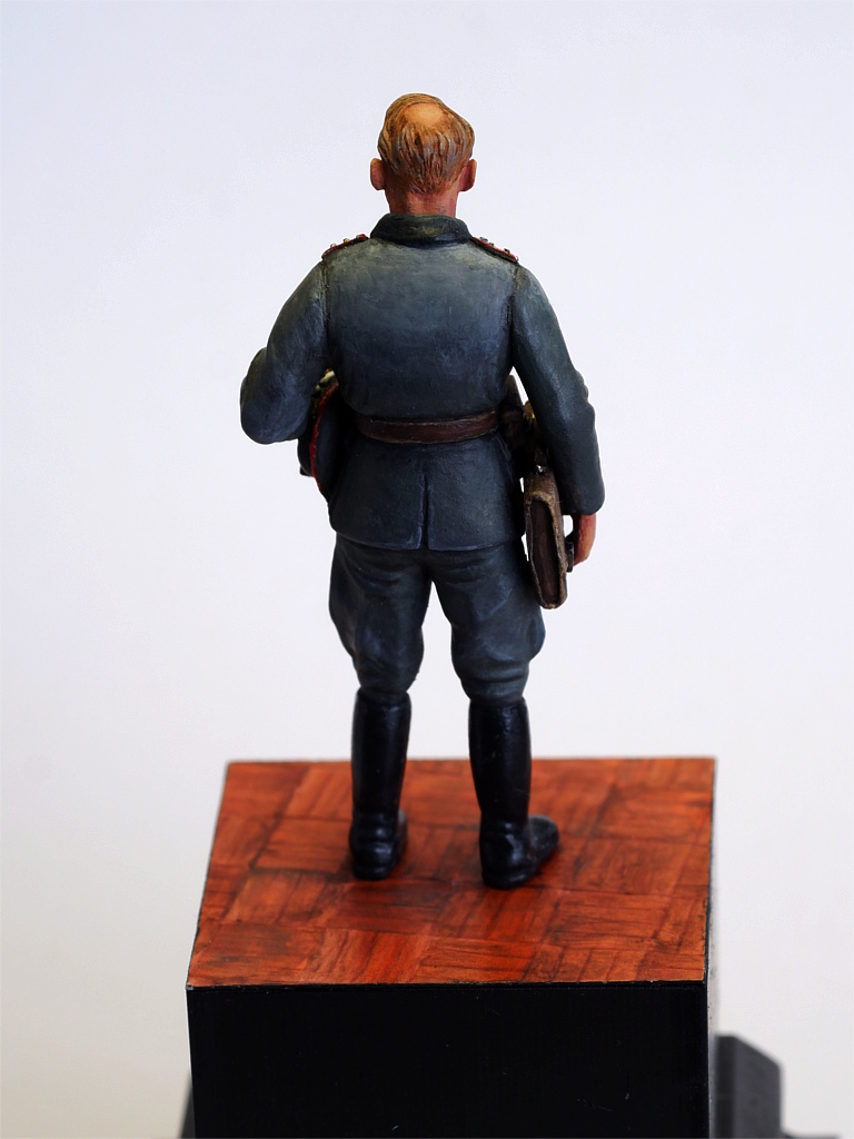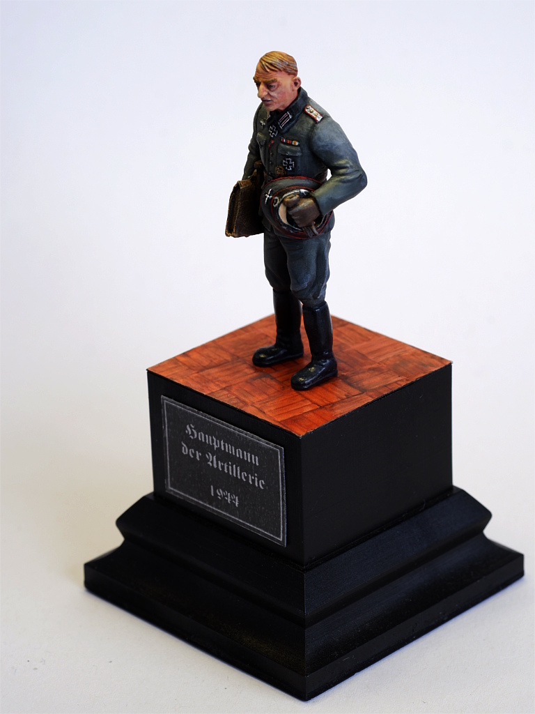 Präsentiert wird die Figur auf einem einfachen Sockel mit Parkettboden, was ganz gut zu einem Soldaten mit Aktentasche im Stabsdienst passt und nicht von den Details der Figur ablenkt.